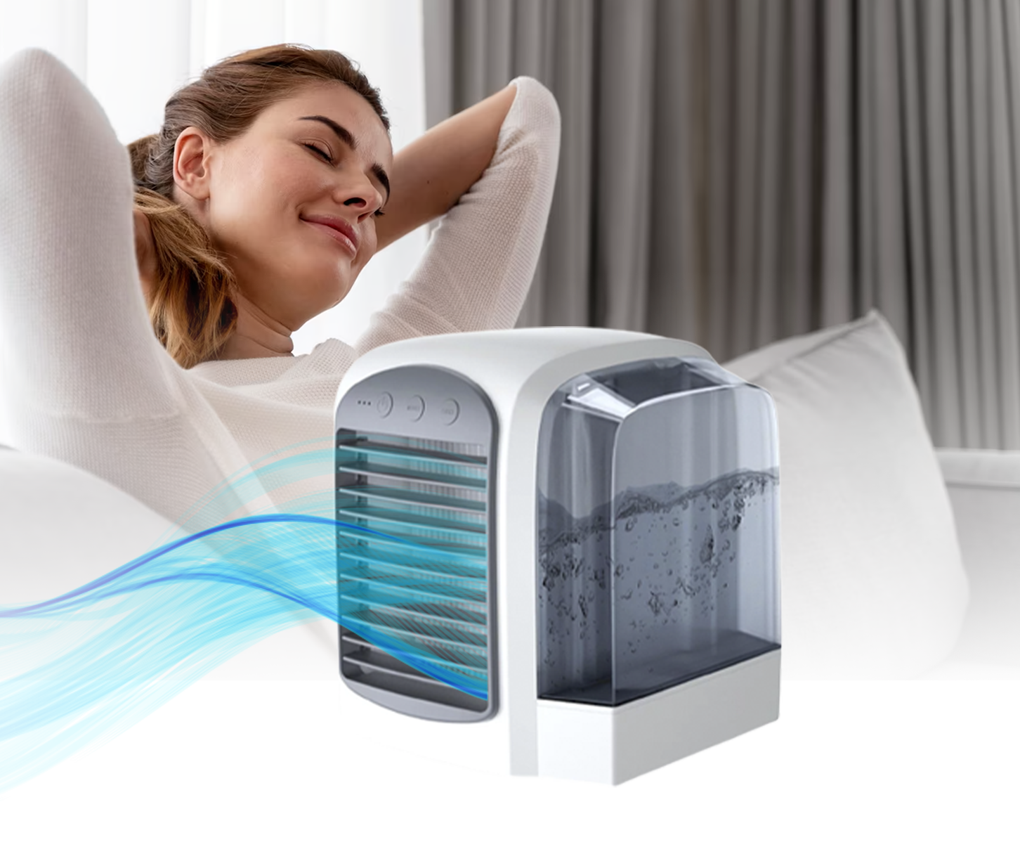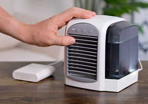 Featherlight small design & easy to carry, the portable AC's USB input makes it easy to move from room to room or even outside for anytime anywhere use.